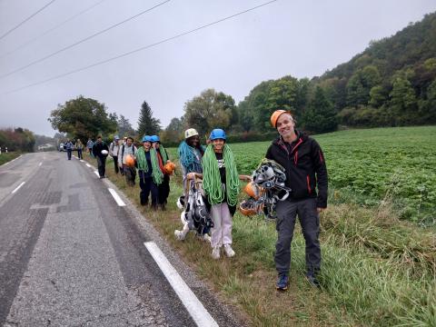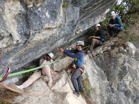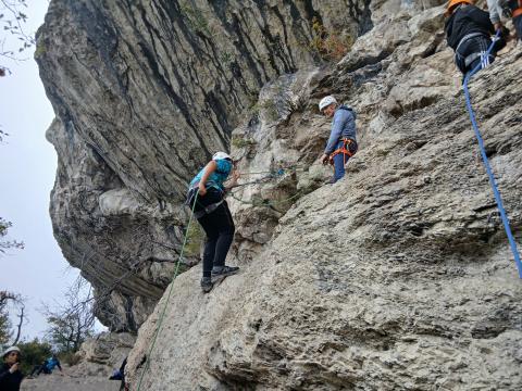 We went on a mountain climing trip and I really enjoyed it. I felt good during all day.We took the tram to Comboire and when we arrived, we learned how to use the climbing equipment. We needed a harness, a carabiner and a helmet.