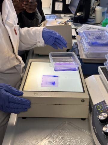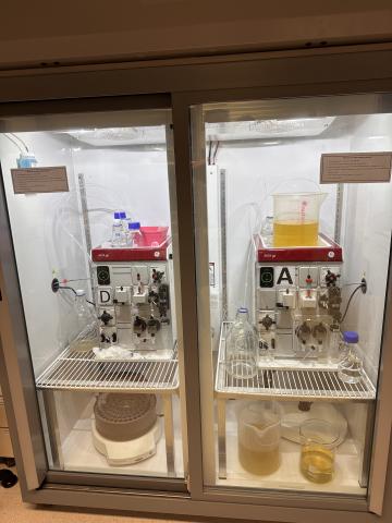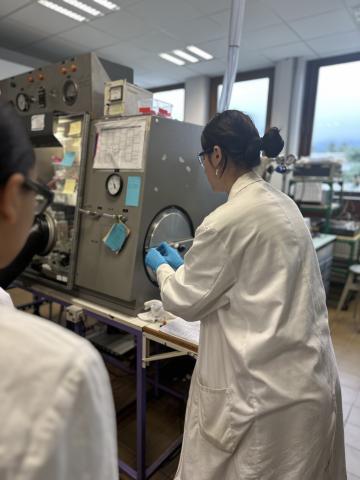 utilisation de la boite à gants (travail en atmosphère sans oxygène, avec seulement de l'argon) -